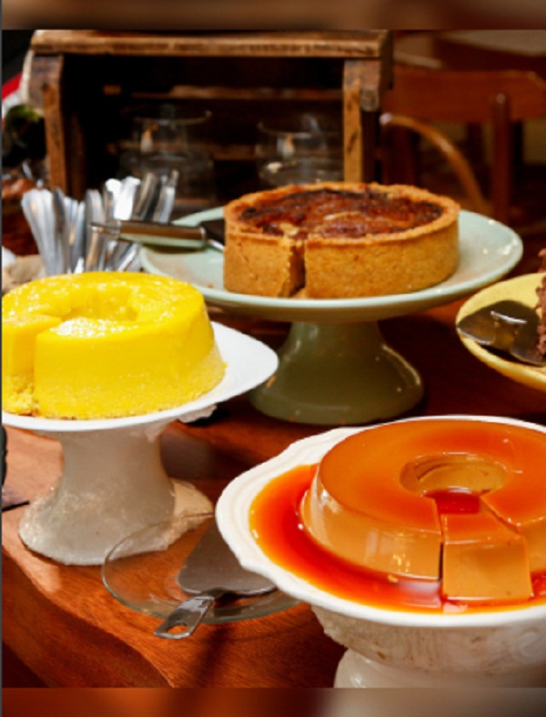 A casa com conceito de empório oferece uma infinidade de opções, inclusive um self-service no horário do almoço. Na cafeteria o cardápio há cuscuz, waffle, bolos, brigadeiros, sanduíches, sucos, quiches, salgados, além de sabores fit como as tapiocas com massa de beterraba, couve e cenoura. Como sugestão de lanche, o regional sanduíche brasileirinho (R$ 21,90) acompanhado do afogato de cappuccino com borda de nutella (R$ 14,90) bem servido de nutella e chantily, é uma boa pedida. A hora da sobremesa é sempre confusa devido a grande variedade de bolos, além de opções como o petit gateau (R$ 18,90) e o gelato da casa.