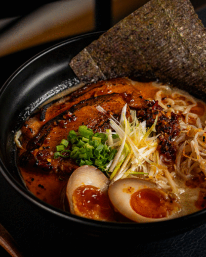 Para experimentar, uma sugestão da casa é o Missô Lamen. Um lamen com caldo de suíno e frango, temperado com missô, finalizado com fatia de chashu (fatia de panceta suína), ajitama (ovo cozido marinado), cebolinha, moyashi (broto de feijão) e chilli oil (óleo de pimenta). Sai por R$ 55.