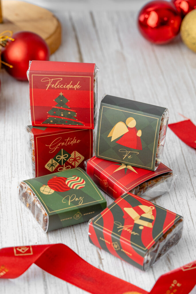 - Os Brownies de Brigadeiro já são queridinhos pelos clientes, agora em uma linda cinta natalina com palavras especiais (Paz, Felicidade, Fé, Gratidão, Amor, Esperança). O preço passa de R$10 para R$9 acima de 30 unidades.