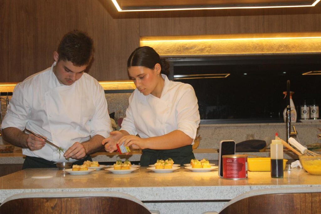 Em dias de evento, o Victor, meu namorado que também é da área, fica na cozinha comigo. Estamos juntos desde o início, nos conhecemos na competição em 2022, e seguimos focados em evoluir e entregar sempre o nosso melhor em cada evento. É um serviço super exclusivo.