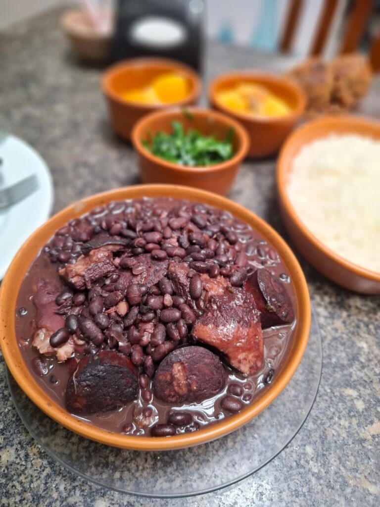 A feijoada, servida de quarta-feira a sábado, é vendida a partir de R$ 60 e acompanha farofa de torresmo, couve picada, laranja e arroz, além de um caldinho de feijão. O prato tem três tamanhos.