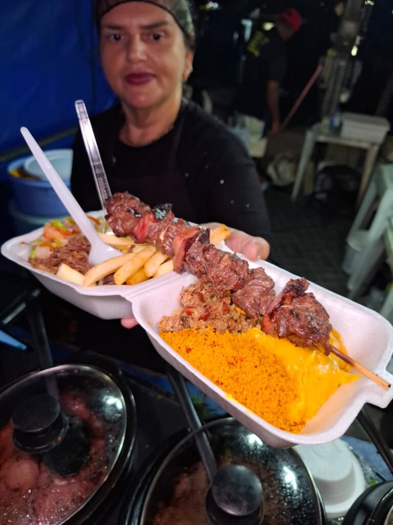 O Espetinho dos Sonhos oferece pratinhos inclusivos, com opções sem lactose e sem glúten. O valor é de R$ 17 com duas proteínas e R$ 20 com seis proteínas. O negócio é comandado por Gilberto Acioli.