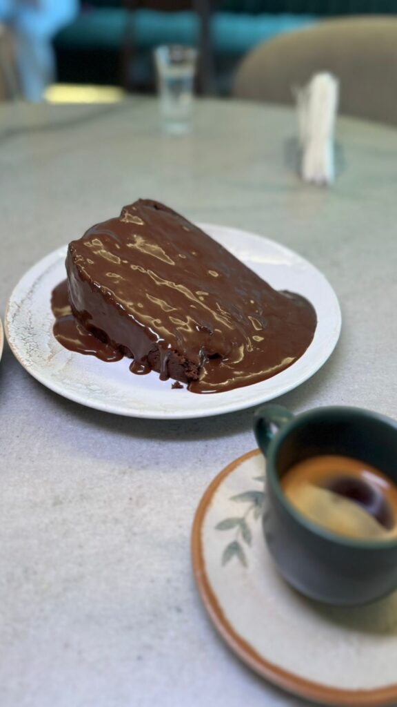 O bolo de chocolate Matina (R$ 27) é um clássico da casa, opção certa para os amantes de chocolate. Para quem quer começar com uma opção salgada, a italiana toast (R$ 29) traz creme de gorgonzola, bacon, rúcula e raspas de limão.