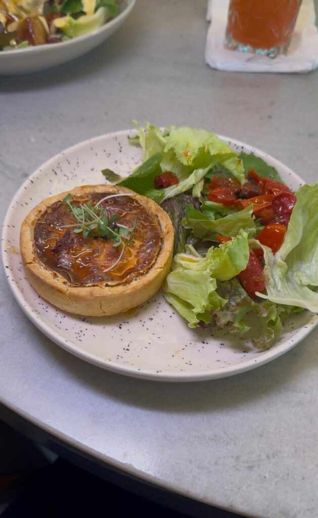 A quiche lorraine (R$ 23) tem ovos e bacon. Para quem desejar, pode pedir salada para acompanhar. Com o adicional, o valor fica R$ 33.