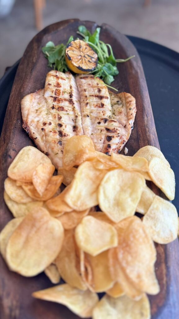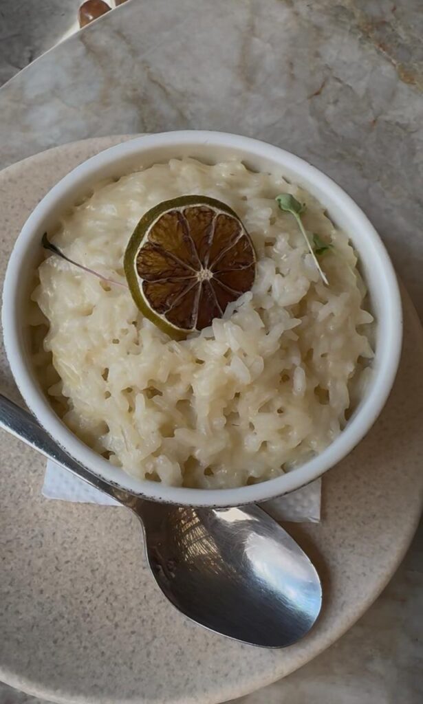 Continuando, o Peixe do dia médio (R$ 212) com mini batatas ao murro (R$ 27). Para acompanhar, o Risoto de limão siciliano com capim santo (R$ 31) é uma boa opção.