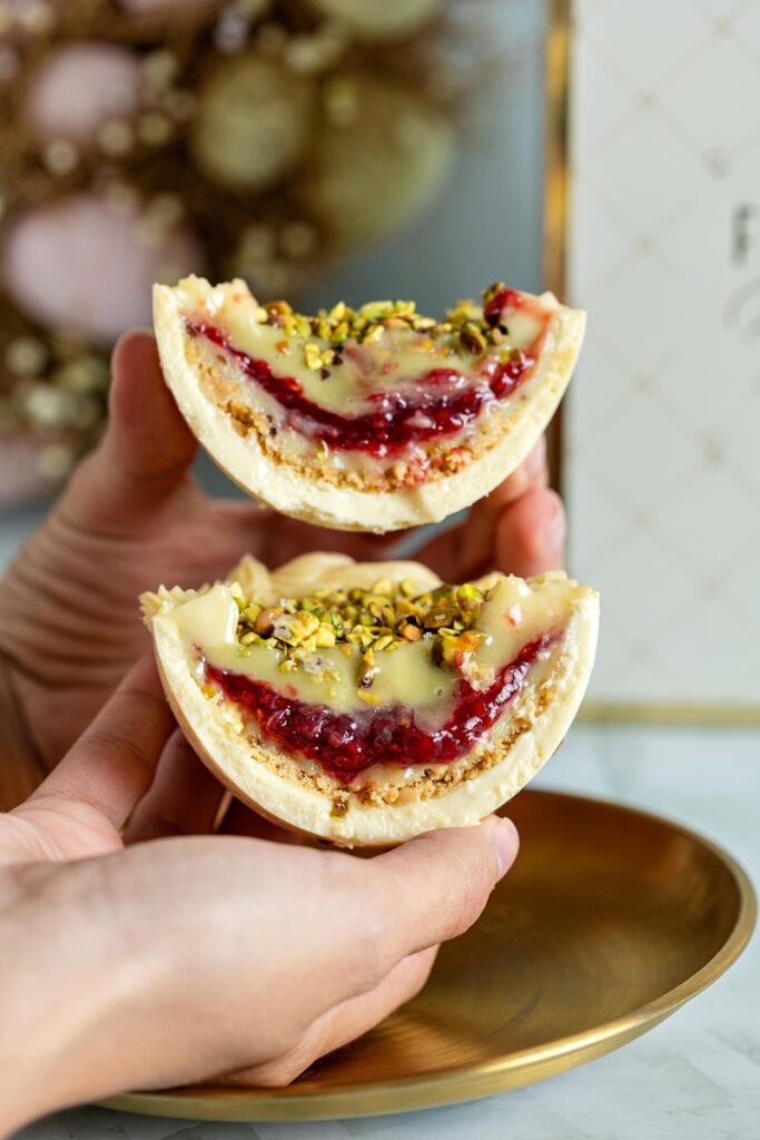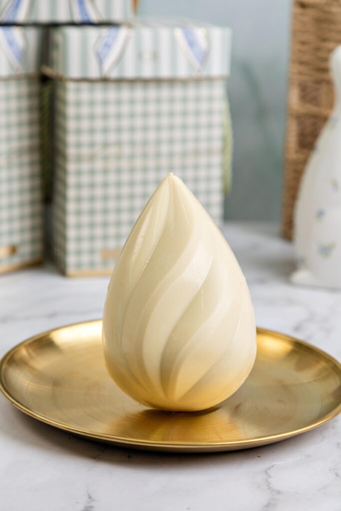 Casca de chocolate branco, recheado com ganache de pistache, crumble amanteigado, geleia artesanal de framboesa, brigadeiro de pistache, finalizado com pedaços de pistache. Com 310g, foi destaque de vendas em 2025 e conquistou o primeiro lugar na categoria “Ovo de colher” na 11ª Degustação dos Melhores Ovos de Páscoa Fortaleza.