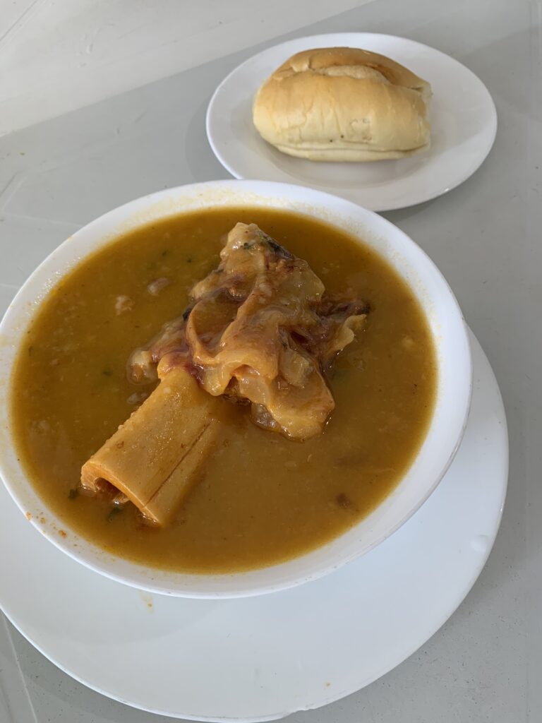 O caldo de mocotó custa R$ 12 o pequeno e R$ 16 o grande. Um caldo cheio de sustância, acompanha pão e chega quentinho à mesa.