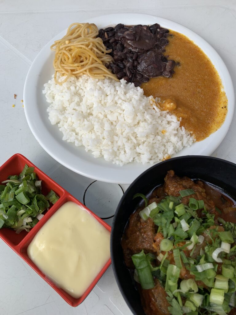 A panelada completa (R$ 25) acompanha arroz e cuscuz, além de ter o cheiro-verde para finalizar. Tem molho de pimenta caseiro para deixar o prato ainda mais saboroso.
